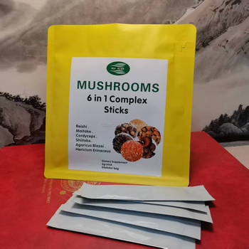 Organik 6-in-1 mantar karışımı özü sopa başına 10 torba 30 sopa her 3 gram Reishi Coryceps Maitake su çıkarma