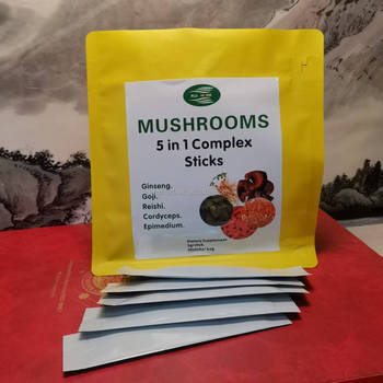 Organik 5-in-1 toz özü sopa karışımı 3gram başına sopa 30 torba başına Reishi Coryceps Ginseng Goji Epimedium davul şişe